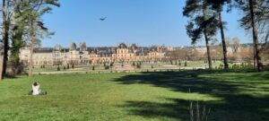 J’ai déjà puisé trop d’énergie pour les suivre, je les laisse me distancer et reprend un rythme plus tranquille pour profiter du paysage. Très jolie, ce petit château de courtry. Puis, à Bois le roi. Prenant le pont pour enjamber la seine, je vois sur la droite les très belles affolantes, puis les maisons à colombages normandes, ou d’un rouge basque. J’atteins ensuite la très typique rue commerçante de Barbizon, toute mignonne, avant d’atteindre les pistes cyclabes qui nous font traverser cette grande forêt de fontainebleau et ces rochers. C’est vraiment un circuit très agréable. Sorti de la forêt, on prend en peu de ville et on se retrouve nez à nez avec le château de fontainebleau.
