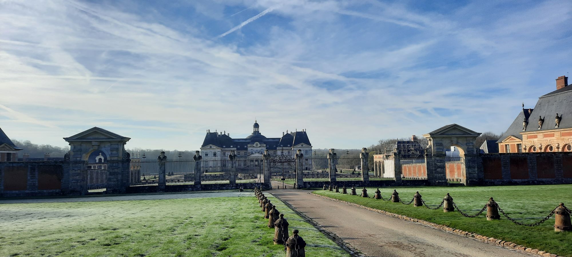 Je traverse Villiers sur marne, Emerainville avec un magnifique levé de soleil et aucune voiture. Tout est paisible et il faut quelques kilomètres pour quitter la ville et s’engager sur des routes de campagnes. Et au KM 25, surprise, un groupe arrivant à vive allure me dépasse. Je prends le train en marche et les suis avec un bon rythme. Au bout de 50km, on passe devant le château de Blandy, puis celui de Vaux le vicomte. Petit questionnaire fourni au début du parcours pour valider les points de contrôle : l’allée du château est-elle pavé ? après la photo, on repart à vive allure. Mais le groupe m’a distancé sur la petite cote de Moisenay.